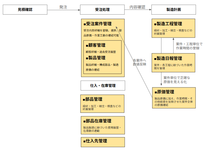 製品別収益性の把握困難 | 受注案件別採算性の即座確認 |