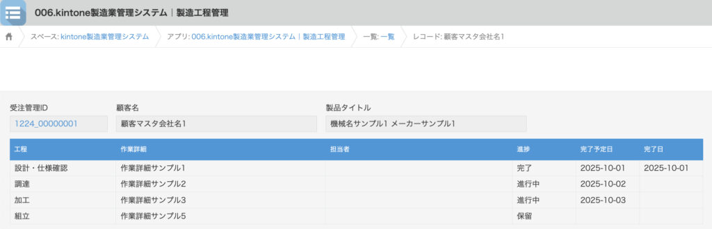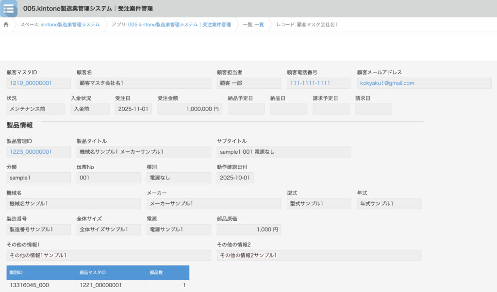本システムは、製造業における受注・製造・部品・原価管理などの業務を効率化・情報共有を強化し労働生産性の向上を実現するkintoneベースの業務管理システムです。