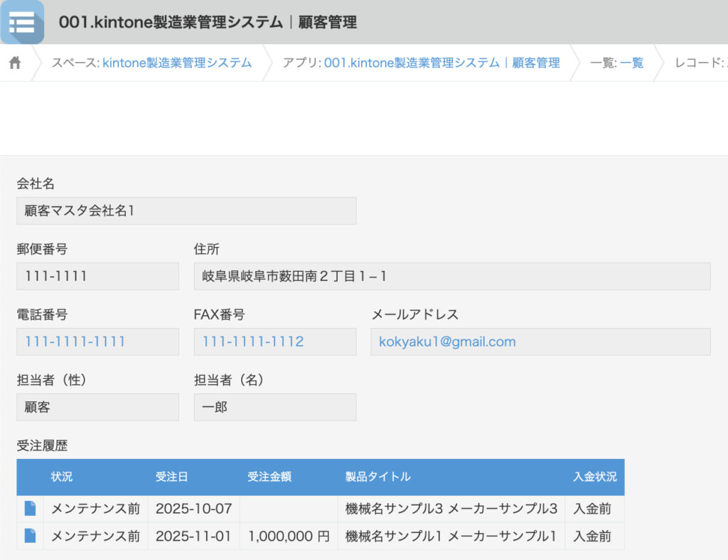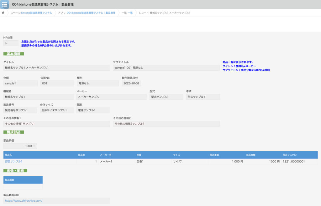 本システムは、製造業における受注・製造・部品・原価管理などの業務を効率化・情報共有を強化し労働生産性の向上を実現するkintoneベースの業務管理システムです。